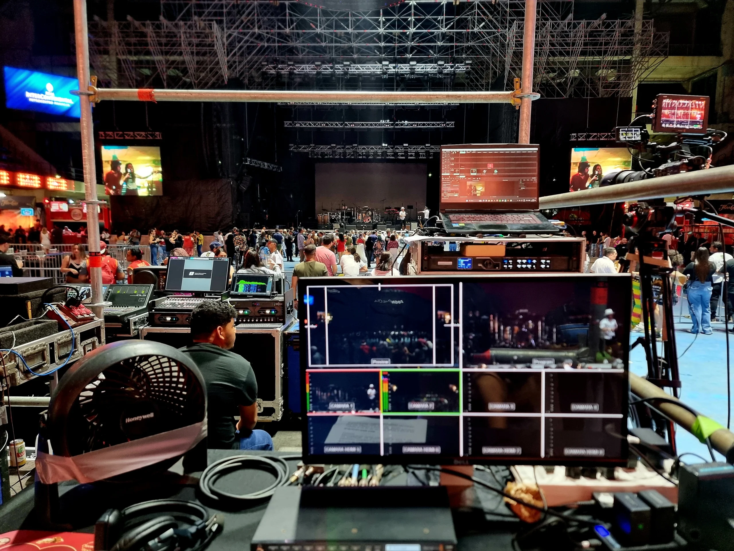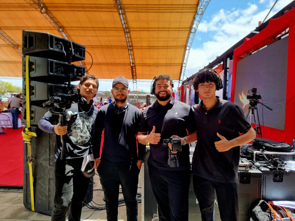 Cobertura con equipos de alta calidad, cámaras profesionales y operación técnica experta para eventos de gran escala.